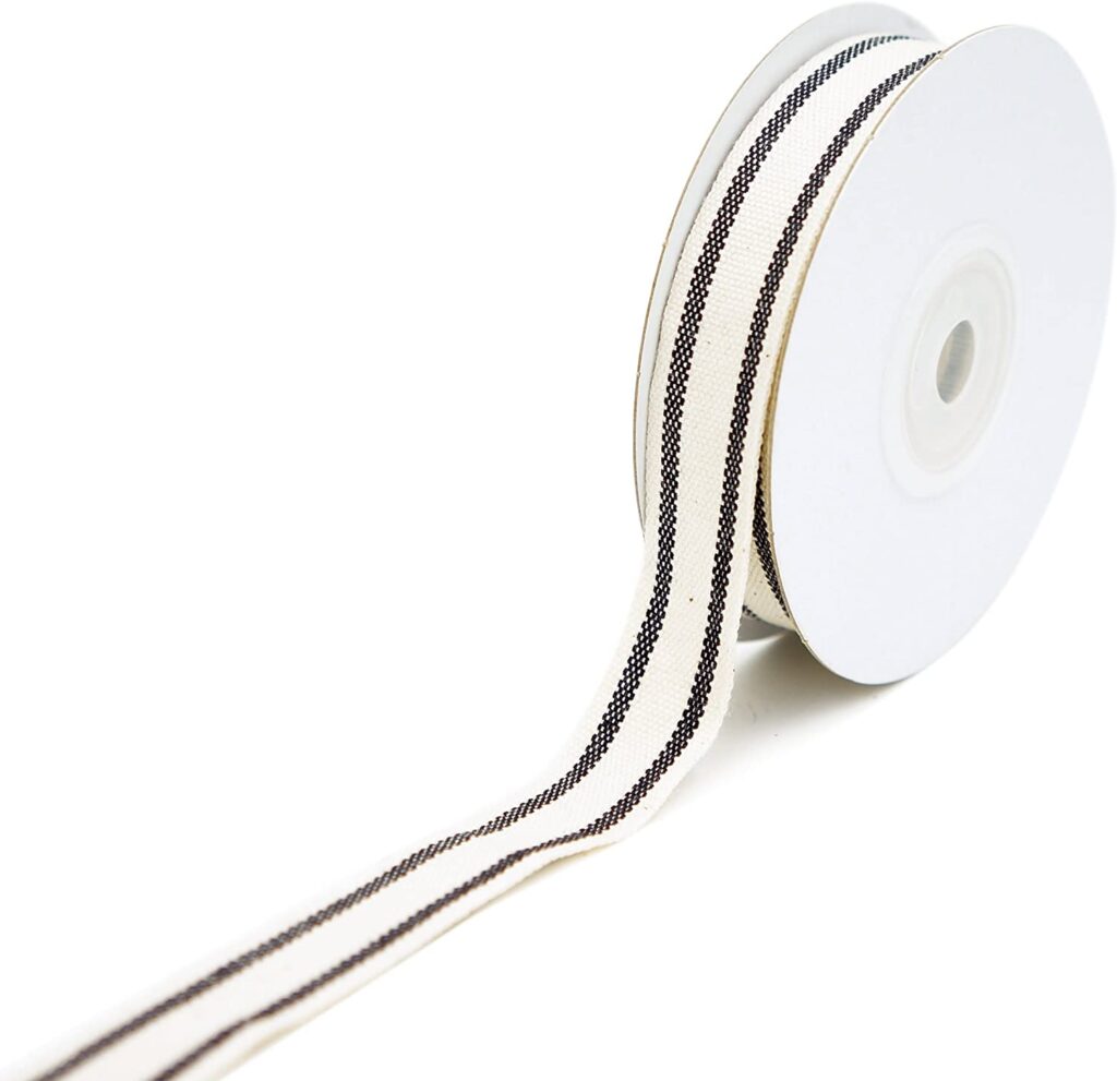 3 – If you’re on the hunt for the perfect black and white ribbon for holiday decor, look no further. This ribbon comes in several sizes and is perfect for wreaths, wrapping presents, hanging garland, and so much more!