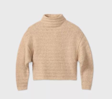 This Cozy Rib Pullover Sweater is so unique with the horizontal ribbing. And to be honest, I wouldn’t have tried it without seeing the customer photos. The sleeves are a dolman style, and it’s definitely more on the cropped side for us taller girls. But with high-waisted jeans, it’s perfect! This one runs true to size.