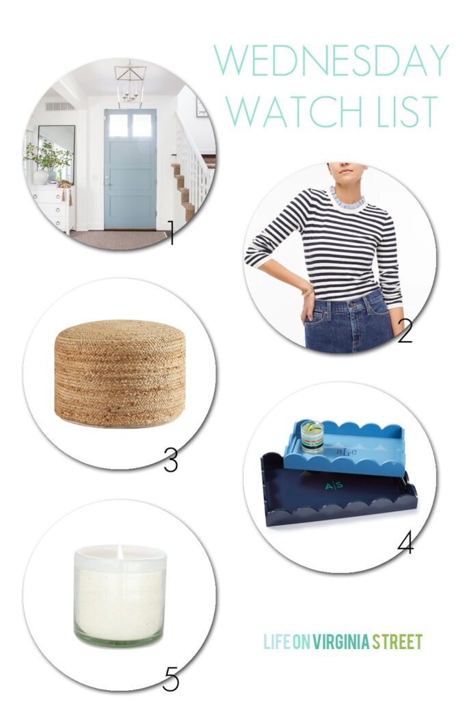 4 – A month or so ago, I shared a pool house I can’t stop thinking about in this Wednesday Watch List. I couldn’t get that scalloped tray out of my mind either. After my relentless stalking, I found the source and it was nearly $300. As much as I love it, I couldn’t justify that for something I serve outdoor food on 😉 So I was thrilled to find these scalloped lacquer trays! They come in two sizes and five colors and are perfect for indoor and outdoor entertaining. You can also add monogramming, but I think I prefer them plain for us!