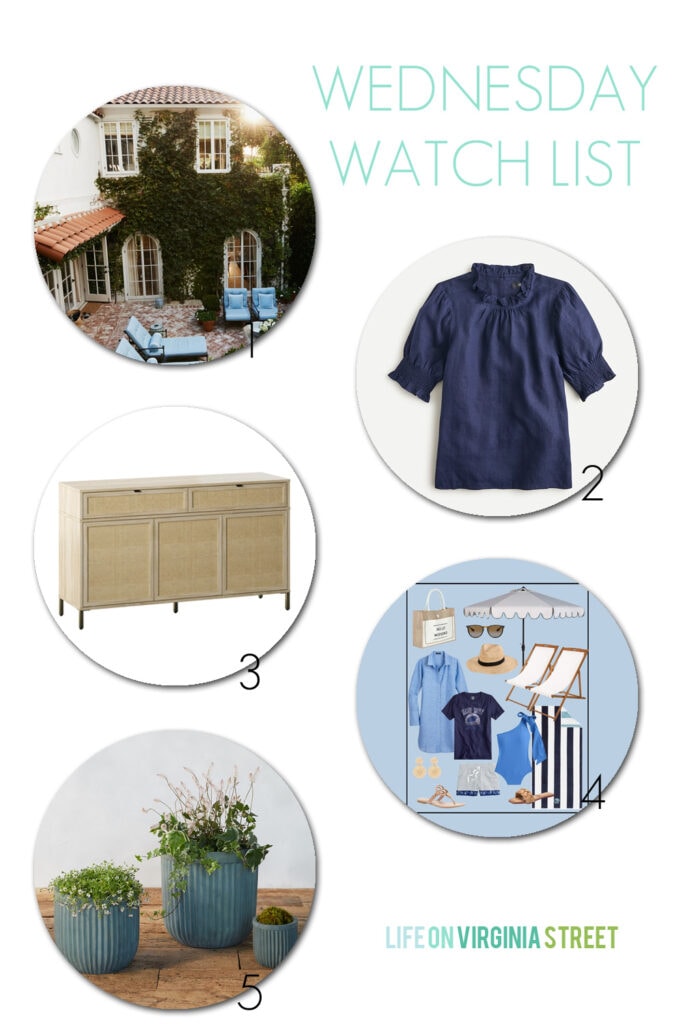 4 – Our outdoor umbrellas we’ve been using for the last five years were starting to show their age. I almost ordered the same ones again, but thought it may be fun to switch things up this year. So, I ultimately decided to order these scalloped umbrellas (also here). And then then I ultimately built an entire mood board around it, because that’s what I do 😉 But these umbrellas are definitely a vibe! I couldn’t decided between the white and navy versions but ultimately went white. They were backordered a bit when I ordered them, but they should arrive on Monday and I can’t wait!
