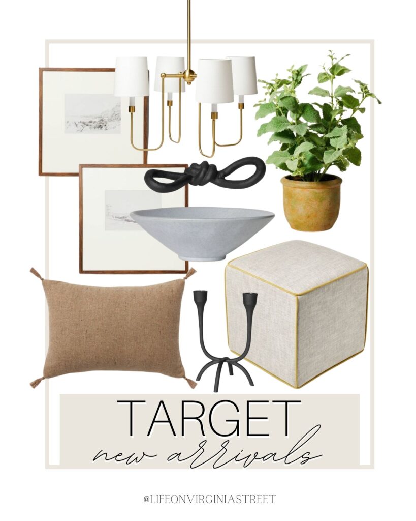 Following are a few other cute finds from the new Studio McGee x Threshold line at Target. Sources are found below the graphic. I’m a huge fan of this new contrast piping ottoman!