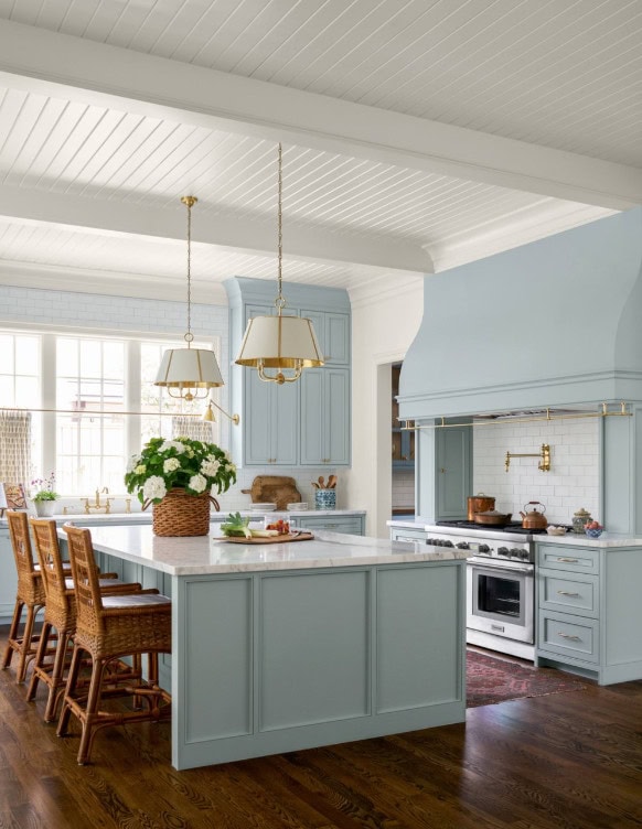 1 – I love when I come across an all-blue kitchen! It’s not uncommon to find ones with blue islands and white cabinet surrounds, but all blue isn’t quite as common. And this one from Katie Davis Design is gorgeous! In fact, most of the home has really beautiful blue cabinetry, built-ins, textiles and space. Definitely worth checking out!