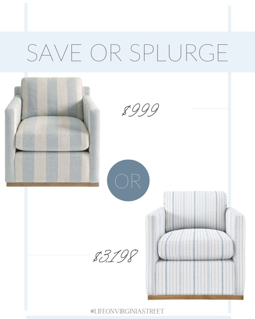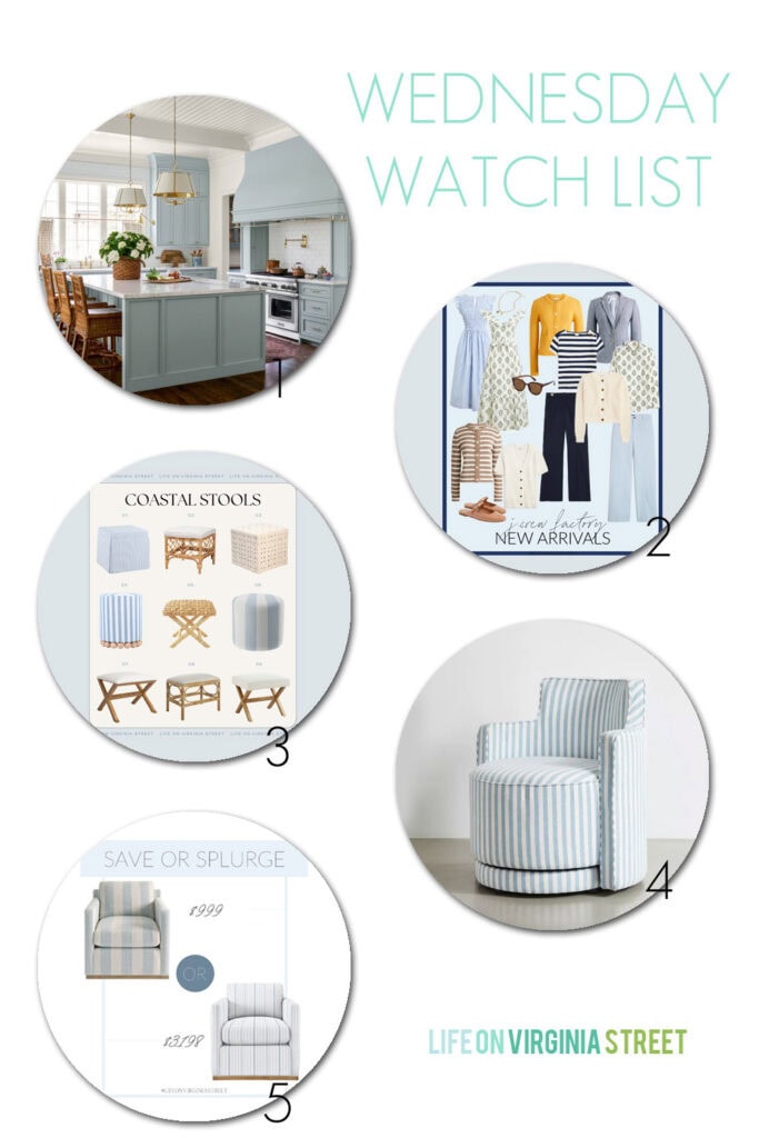 5 – And speaking of great striped swivel chairs, I’ve always loved the Barton swivel chair from Serena & Lily! The wood accent along the bottom is beautiful (you can choose from four different stains/colors) and they offer 175+ fabric options. But this new Lottie Swivel chair from Grandin Road is a really great budget-friendly alternative. It’s actually 25% off the price shown in the graphic today, making it only about 23% of the cost of the S&L version. I’ve ordered furniture from Grandin Road before (like this sofa) and have been very happy with the quality.