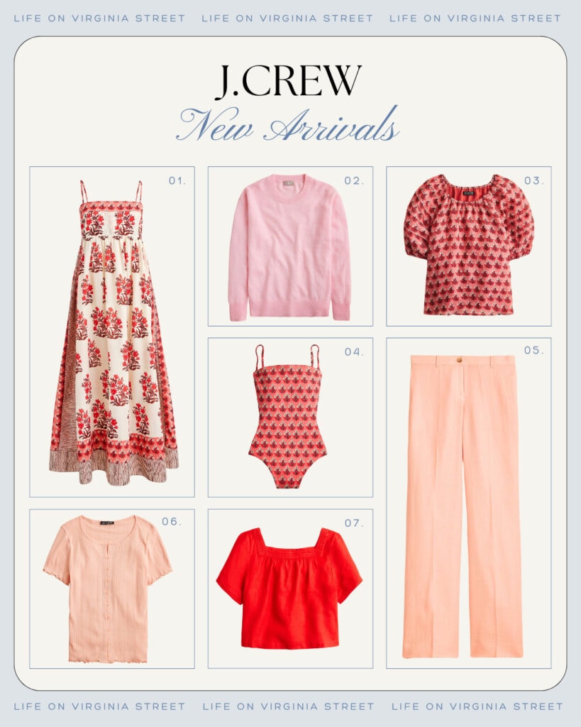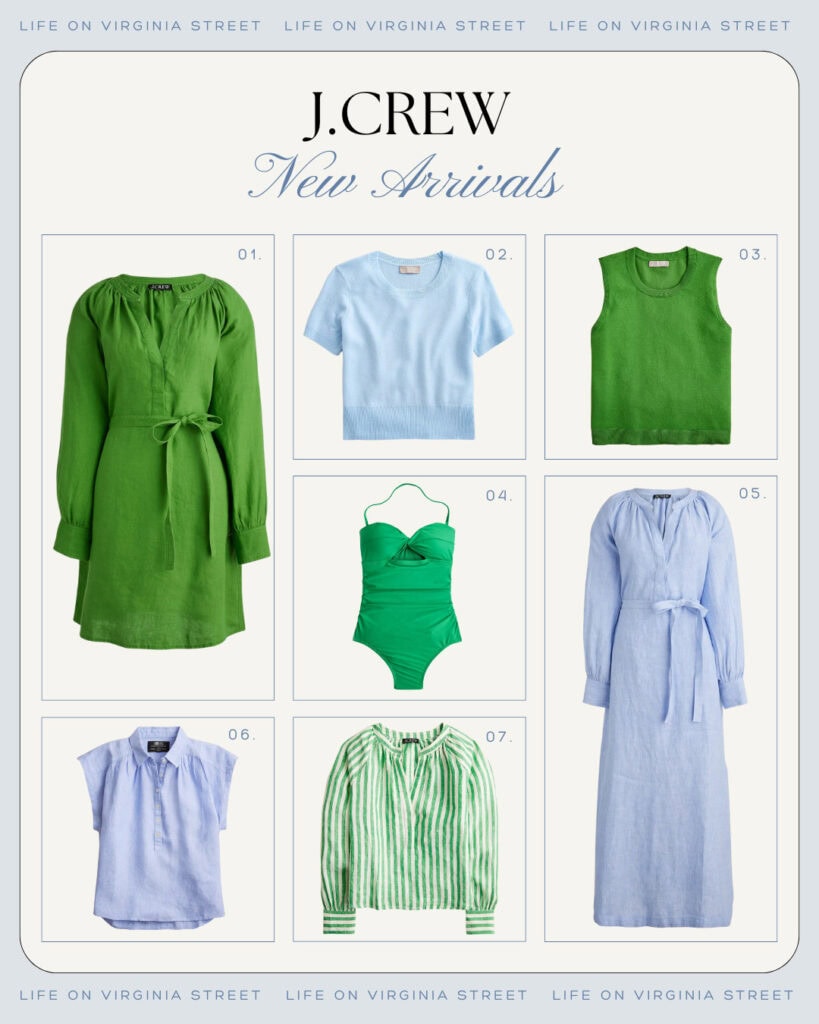 2 – There are lots of cute new arrivals at J. Crew (even more since these two graphics were created)! I’m loving this combination of grass green and sky blue for spring! All sources are listed below the graphic.