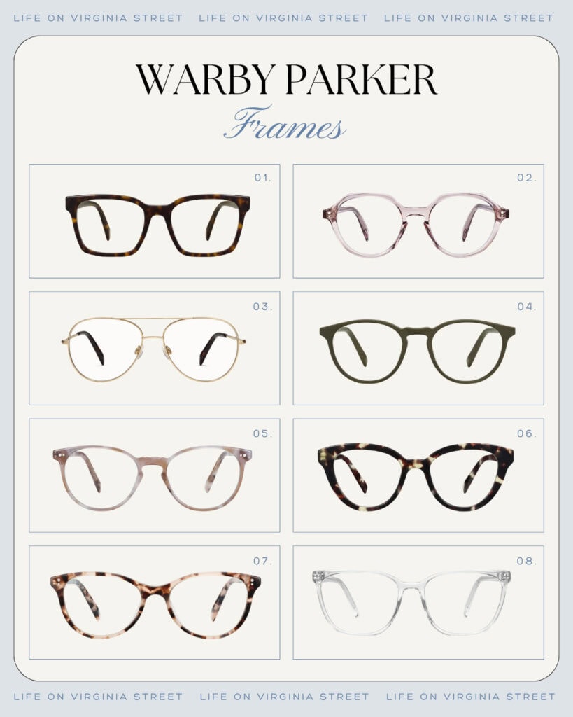Here are some of the other frames I virtually “tried-on”. All sources are listed below the graphic.