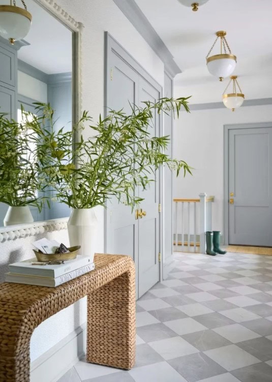 1 – Every time I see this mudroom and home tour from Oliver James Interiors pop up in my Pinterest feed, it reminds me a lot of our future laundry room. Our definitely won’t be this formal or fancy, but we’ll have the lighter marble checkboard floors and then the blue gray doors. I’m excited to see how it all comes together! But this home tour has many stunning features worth checking out. I also love the pantry!