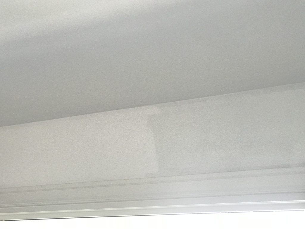 I got a second coat of paint up in the dining room. It’s amazing how much brighter it gets with each coat! The second coat is on the left (below). I still plan to do one more coat, because I feel like coverage is best on white paint colors with three coats. But I’ll be sharing the new look soon!