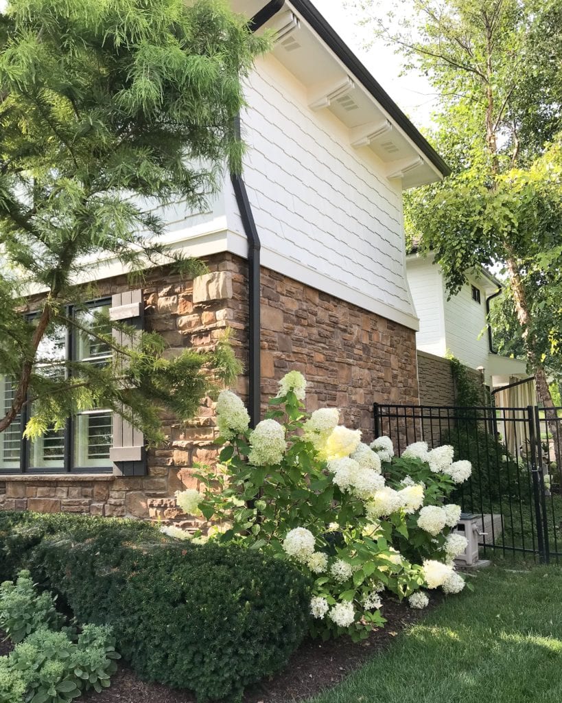 Our hydrangeas are blooming now like crazy! I measured some of the blooms (limelight hydrangeas) on the west side of our house and some are nearly 18″ long! I think we have close to 30 hydrangea bushes (different varieties) throughout our yard, but I could plant a hundred more and still be so excited about each and every one of them!