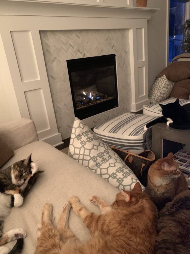We ended the weekend binge watching some more Schitts Creek. I looked down at one point, and all four cats were within three feet of me. I think they enjoy these types of nights as much as we do!