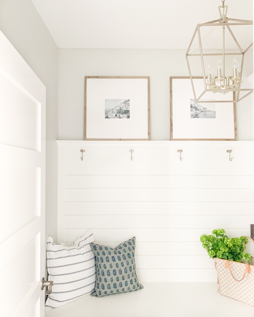 MUDROOM SOURCES: Lantern Pendant Light | Frames | Striped Pillow | Paisley Pillow (similar here)Â | Faux Viburnum Stems