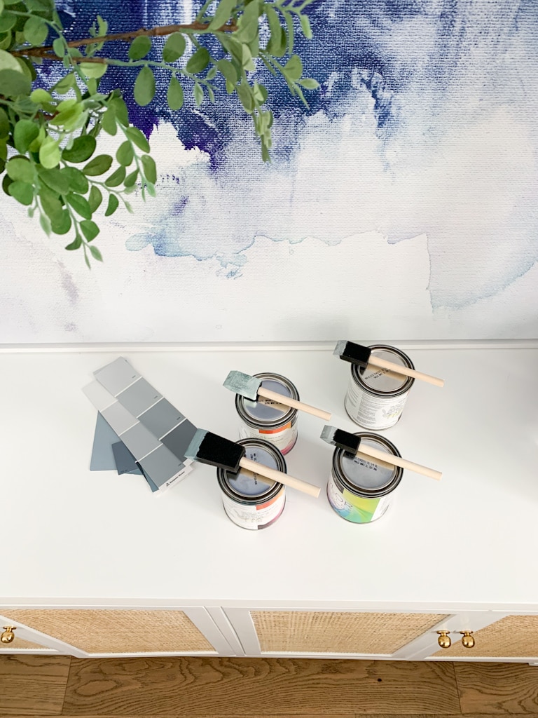 I finally made it over to the paint store a morning last week. We decided to hop in the car to go to Starbucks in our pajamas and while we were out, I thought, “I really need some paint samples”. So, I went without my hair brushed and in my pajamas because when I get something in my head, I won’t let it go 😉 I’ll be sharing a lot more details this week on the colors I tested (and where). But if you’ve followed me for any amount of time, you probably know painting walls is one of my most favorite activities ever! I love that it’s easy, cheap and can totally transform a room!