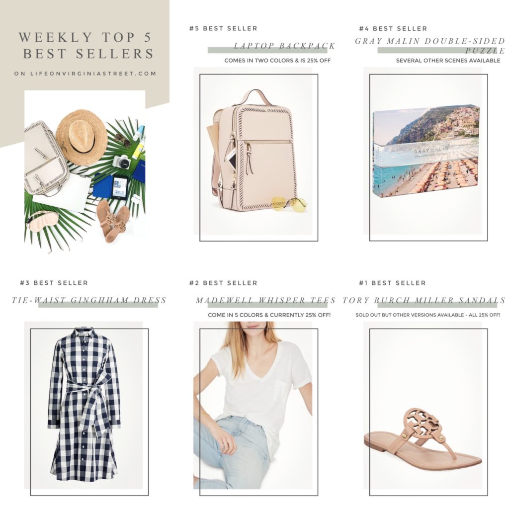 Following are the top sellers of the week across all of my channels. Links to each item are below the graphic. Unfortunately the huge sitewide Nordstrom sale ended last night, so several of these are no longer on sale since I shared them yesterday on Instagram. Interestingly enough, some of the flip flops that sold out are back again and in stock and on sale!