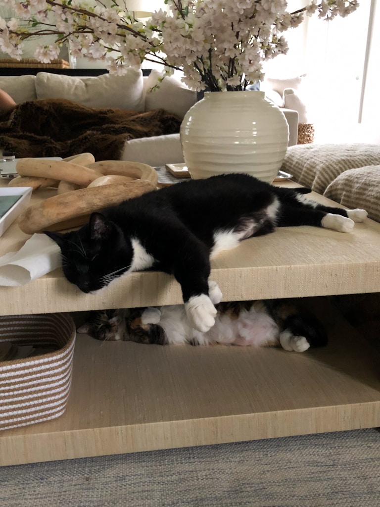 Kurtis found Hawkeye and Henley sleeping like this last week on the coffee table and he said it looked like a cat bunk bed. Ha! It totally did! They basically couldn’t be cuter.