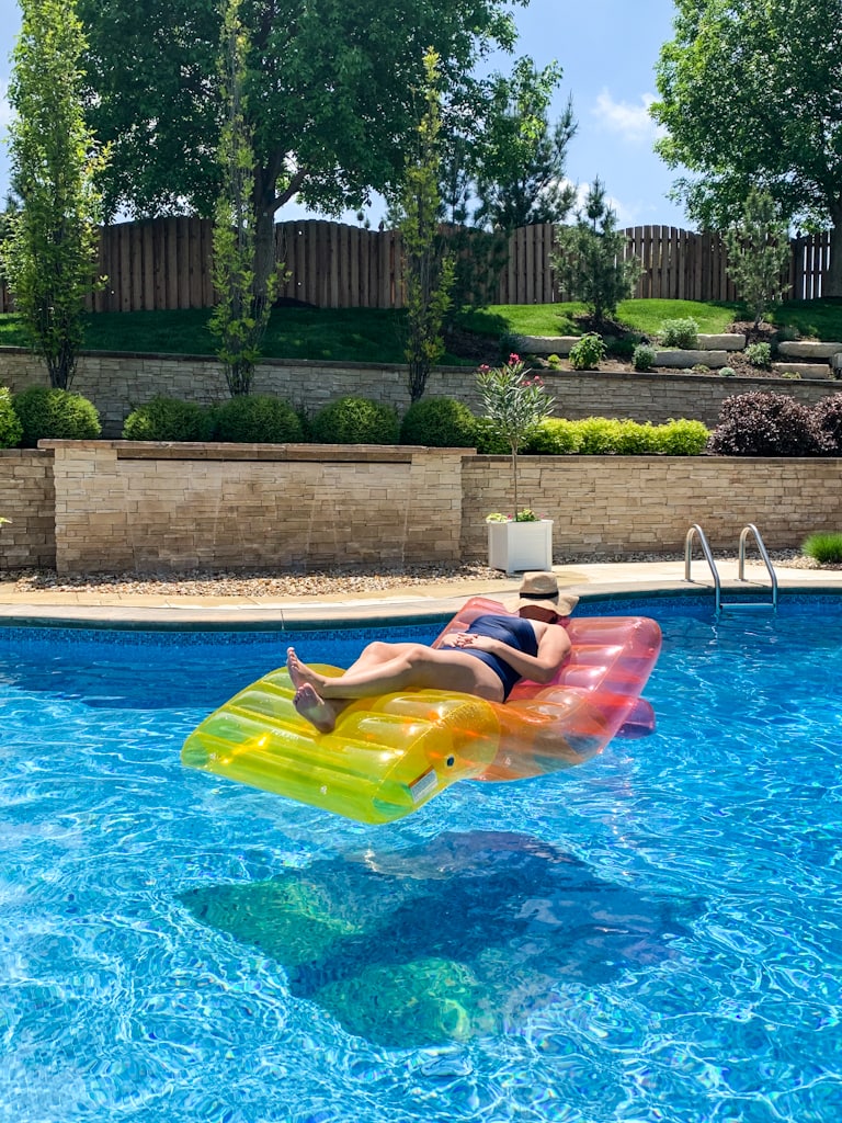 If you’re worried that all we did all week was work, rest assured, we also got in some down time 😉 The weather on Saturday afternoon was absolutely gorgeous! I ordered this pool lounger from my summer pool floats post and it couldn’t be more relaxing! Kurtis was annoyed by how large it was until he tried using it and now loves it too!