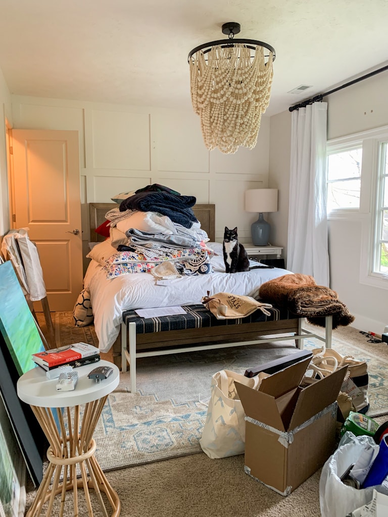 It always has to get worse before it gets better, right?!? I first took everything out of the guest room closet. It was insane how much I had shoved in there! Proof that our house is rarely ever as clean as it looks in styled photos!!