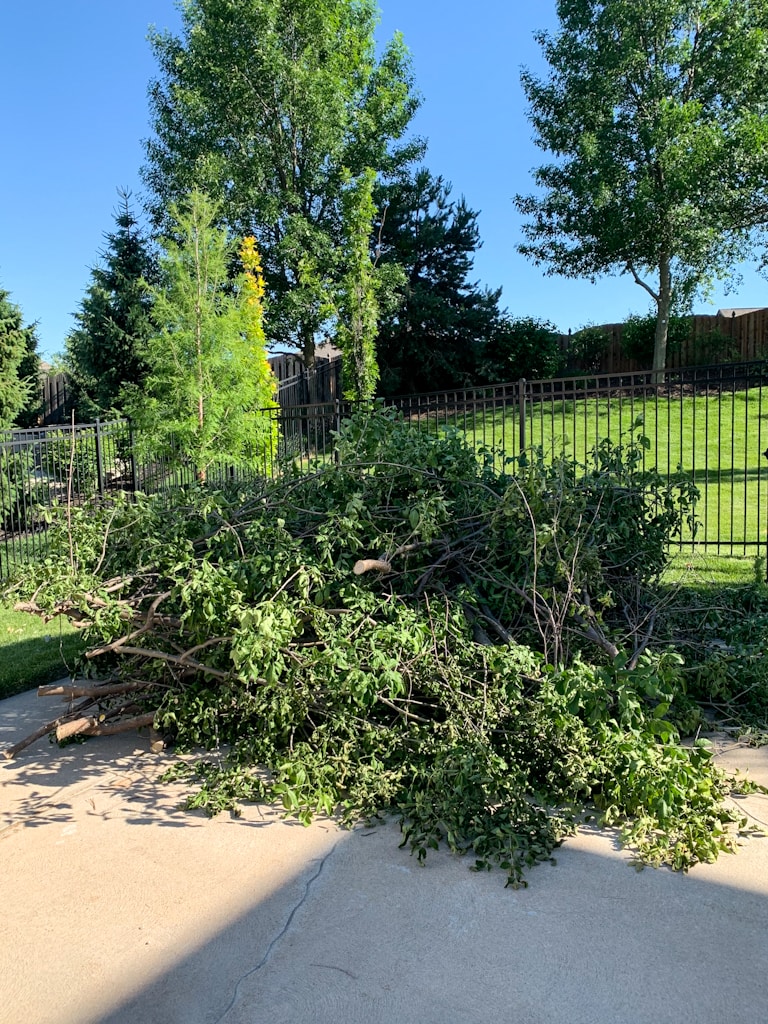 Since we kind of just went for it, I don’t have tons of photos, but in the one below, we had trimmed the top middle tree but not the two on either side. They look so much cleaner now, and it almost looks like we shaped them to be round, when all we really did was clean up the lower limbs!