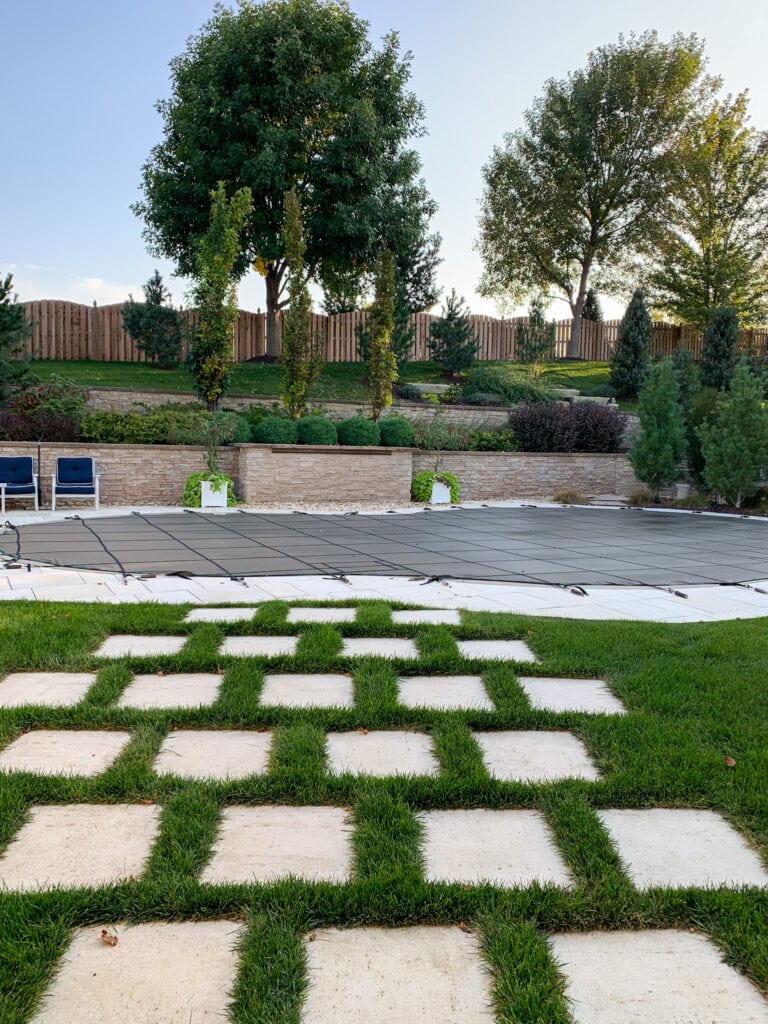 Tuesday was a sad day. We had our pool closed up for the season. I shared a few Instagram stories about the process but thought I’d also share a photo here since I usually get so many questions about the process! In Nebraska, we drain our pools a few feet to allow for snow/rain/ice over the winter months. It also allows the lines to be winterized. You can see below how far we’ve drained it. And although this picture is a bit of an optical illusion, our pool is standard diving depth in the deep end 🙂