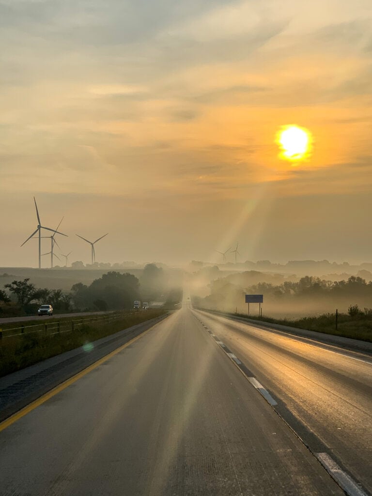 We hit the road bright and early Wednesday morning to head northeast for my 40th birthday trip. Although we had plans to go to Europe instead, we made the most of it and found a cute hotel to stay in for a few days. The morning we left, we had heavy fog but it was so beautiful once the sun started to rise over Iowa!