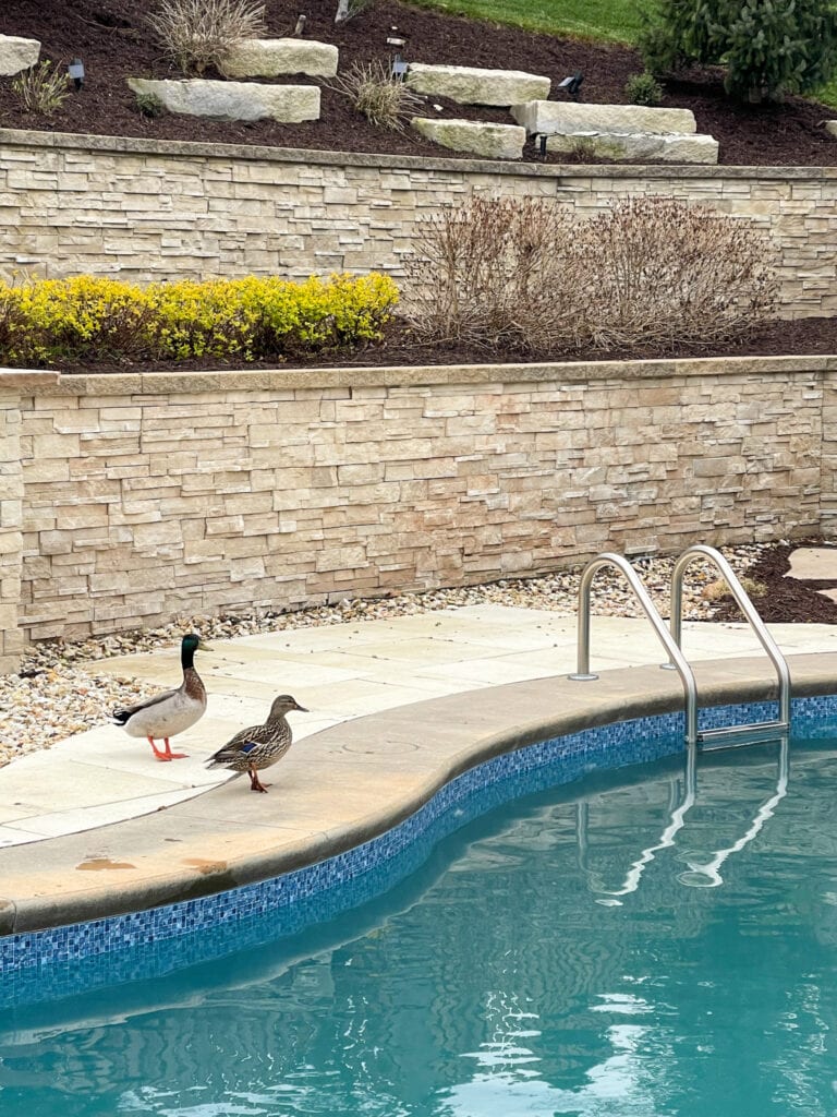 But in other news, we had a duck couple promptly back to visit. For their safety (and the safety of our pool) we have to scare them off every time we see them. They have a pond nearby and we need to make sure they nest over there rather than near our pool! It’s an annual battle and typically lasts a week or two 😉
