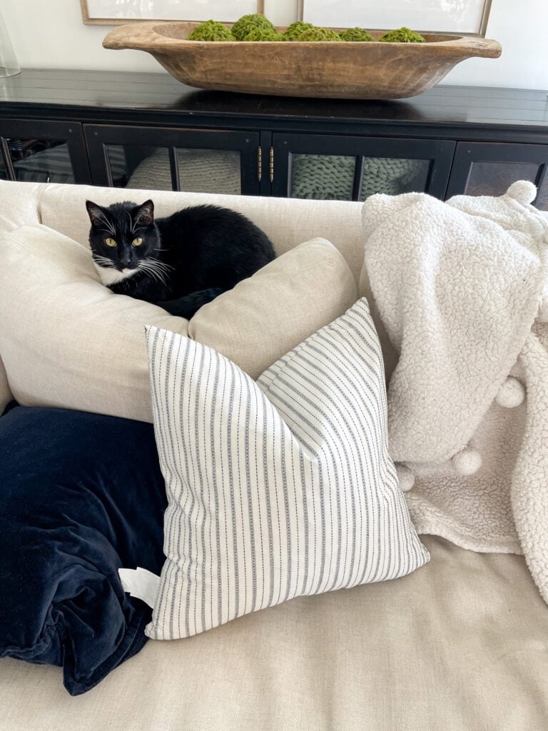 Here’s Hawkeye modeling behind one of the pillows in this affordable set that I got last week! The inserts aren’t super full, but considering the price, they work great! The covers also have zippers so if you ever wanted to upgrade the inserts, they’re still a great price!