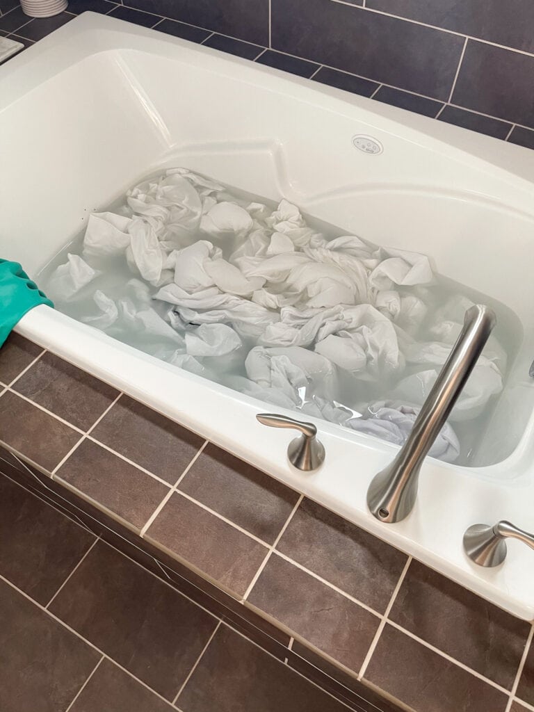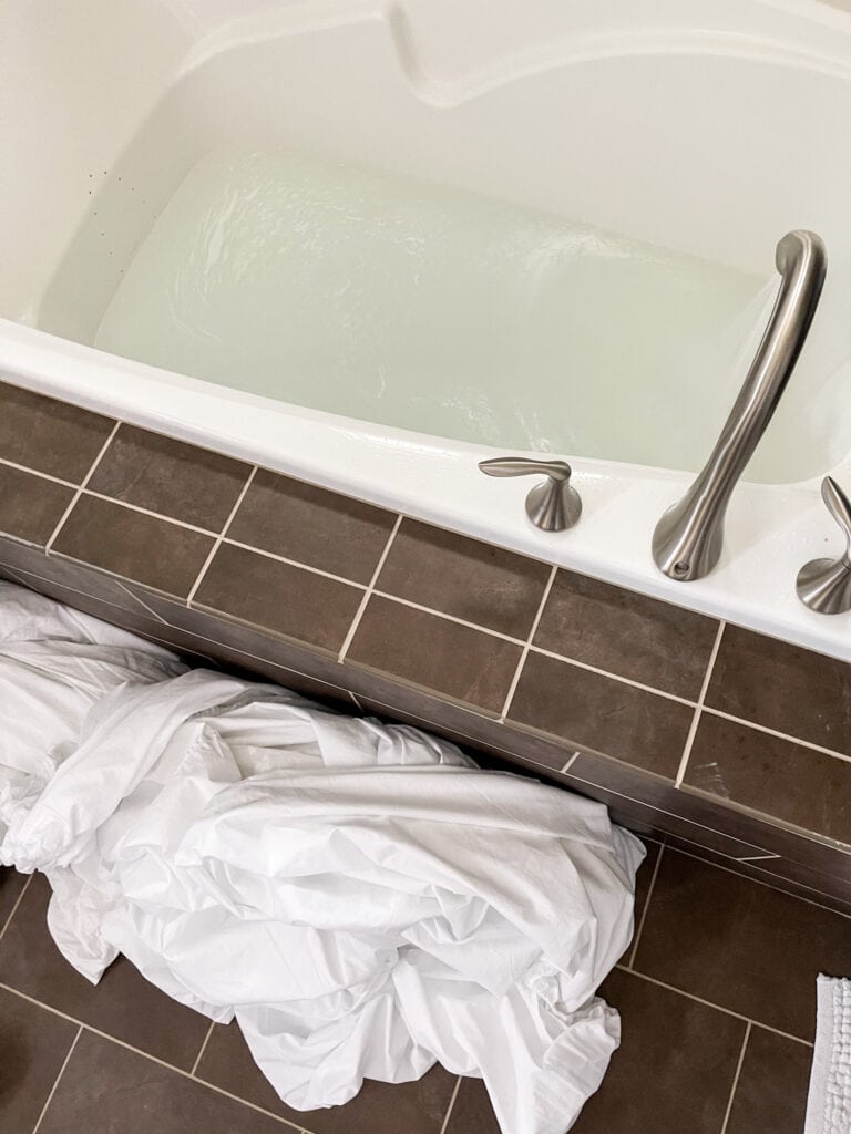 Is it weird we were hoping for grosser water? Ha! After six hours, the water honestly didn’t look that much worse than when we started. I texted Kris and she said so much can depend on the water you have in your home (and how much build-up it causes). But we feel good knowing our sheets are much cleaner now!