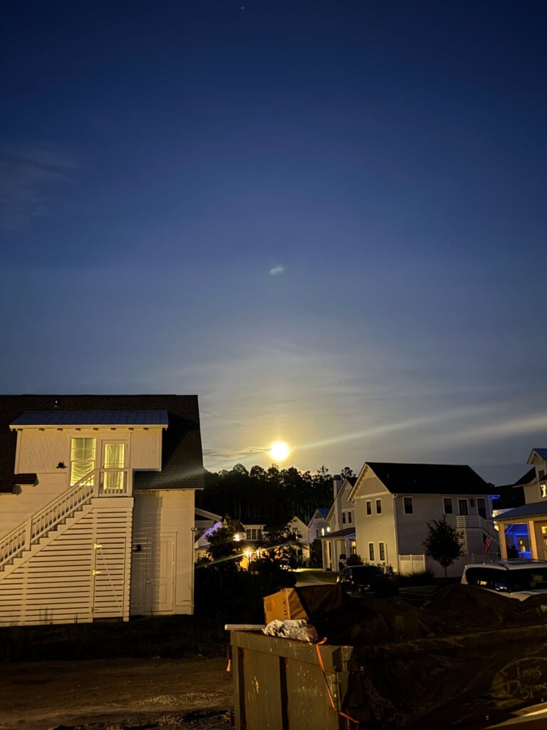 Our friends Chris and Rachel officially moved into their new home on Tuesday so I joined them for dinner and dropped off a housewarming gift. It’s honestly so weird they’ve moved now (thankfully only a street away). But more so to see the house with furniture in it, after stalking it empty for nearly nine months now! As I was leaving, I saw the strawberry moon.