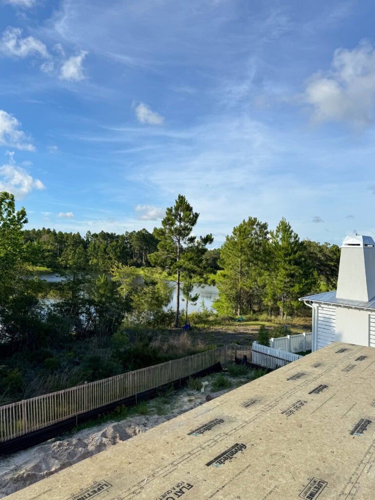 Here’s the view he sent me from what he thinks will be his office. I’ll spare you my face squinting at the screen in the sun from the real FaceTime screenshot 😉 Needless to say, we were really excited to see more water than we had initially expected. We love all the trees but the water was a fun surprise.