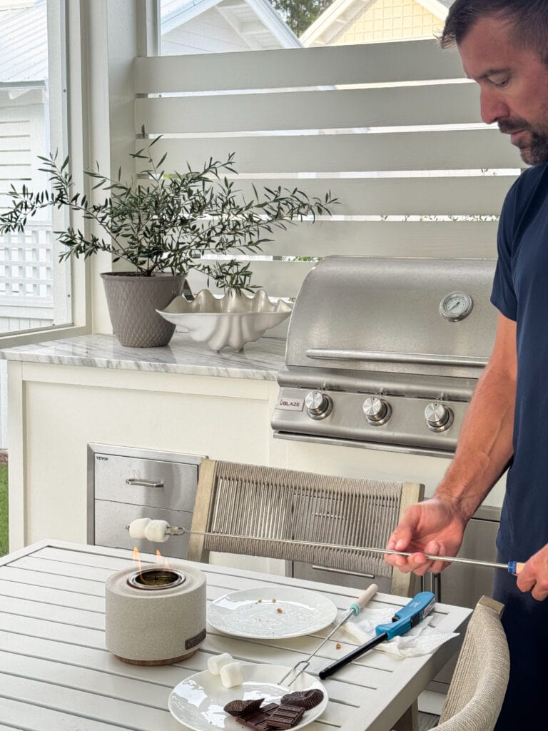 I also bought this tabletop mini Solo stove that is perfect for making S’Mores. We hadn’t used it yet, and in the middle of watching a show last night, Kurtis said he was craving one. So we broke it out and roasted them. They were so good and this little kit feels so much less messy than starting up a firepit or other means to make one.