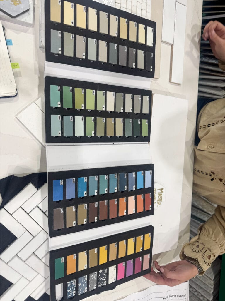 See that cement star tile in the top of the photo above? You can see all the color combos below that you can make on both the background and stars. We’re likely going to keep it really simple given the pattern and use the white stars with the sand colored sample you see sitting on the tile in the photo above so that it’s fairly tone-on-tone.