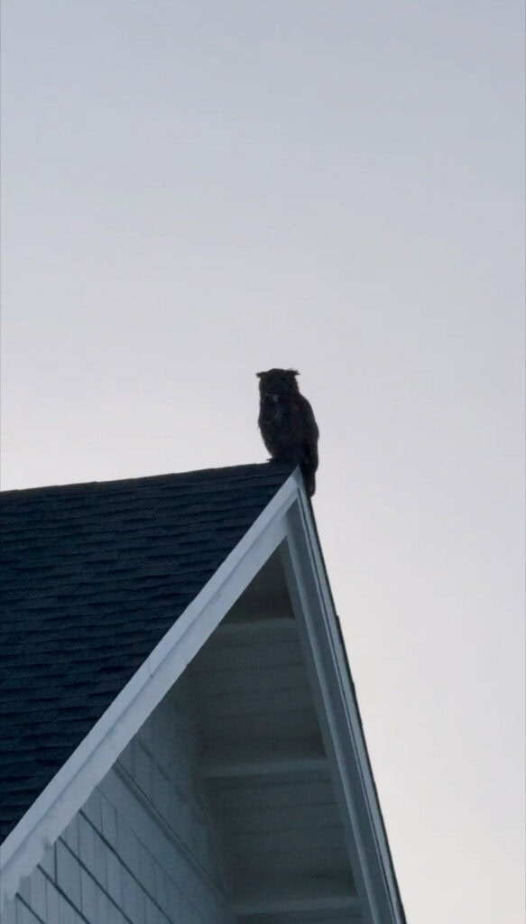Despite not seeing any bears this week, our neighbor sent us this picture of a large owl that was camped out on our carriage house roof.
