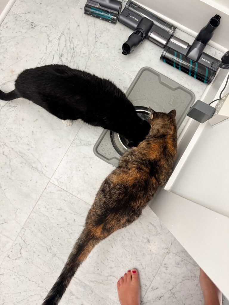 I’ve created mini monsters with these two divas. Over the past month or so I’ll add an ice cube to their water dish once or twice a week. Now they’ll sit in there and cry when they want one. Which is a lot more frequently than once or twice a week. Ha! But they love it so much, they’ll even drink at the same time.