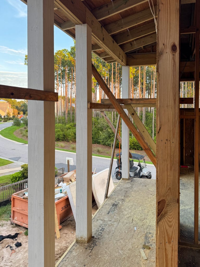 The guys have been working like crazy over at our new house! The preliminary electrical work seems to be close to wrapping up, most of the framing is complete, and the back screened-in porch has been almost fully framed out!