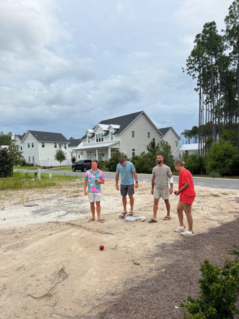 On Sunday, we ended the weekend with dinner at Rachel’s and Chris’ house and the inaugural friendly bocce tournament event in the empty lot next to them. Basically a fun reason to get together with friends for a little friendly competition! It was a lot of fun!