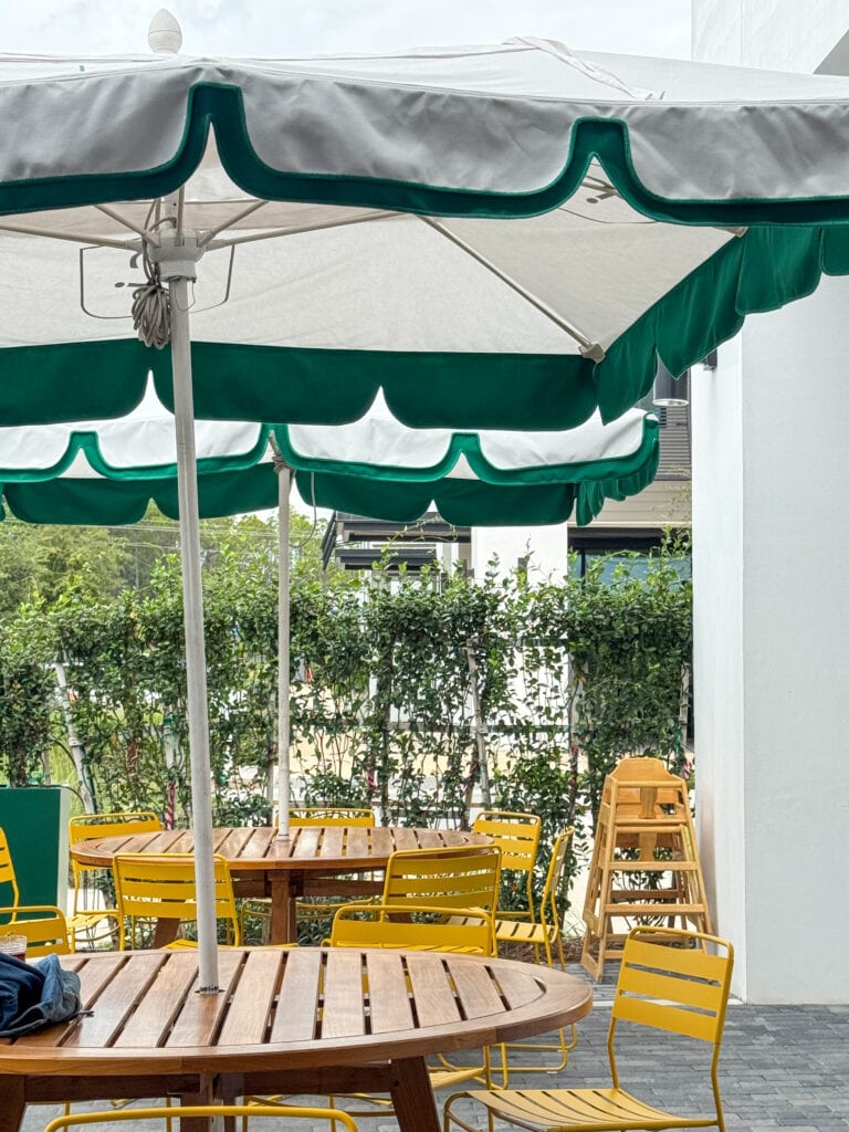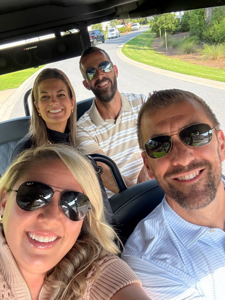 Wednesday night we took the golf cart along with Chris and Rachel’s family (the boys rode their scooters) to the opening of Scout for dinner! It was the first time we had ever taken the golf cart to a restaurant (since this one is connected to our neighborhood) and it felt like we needed to document – awkward selfie and all!