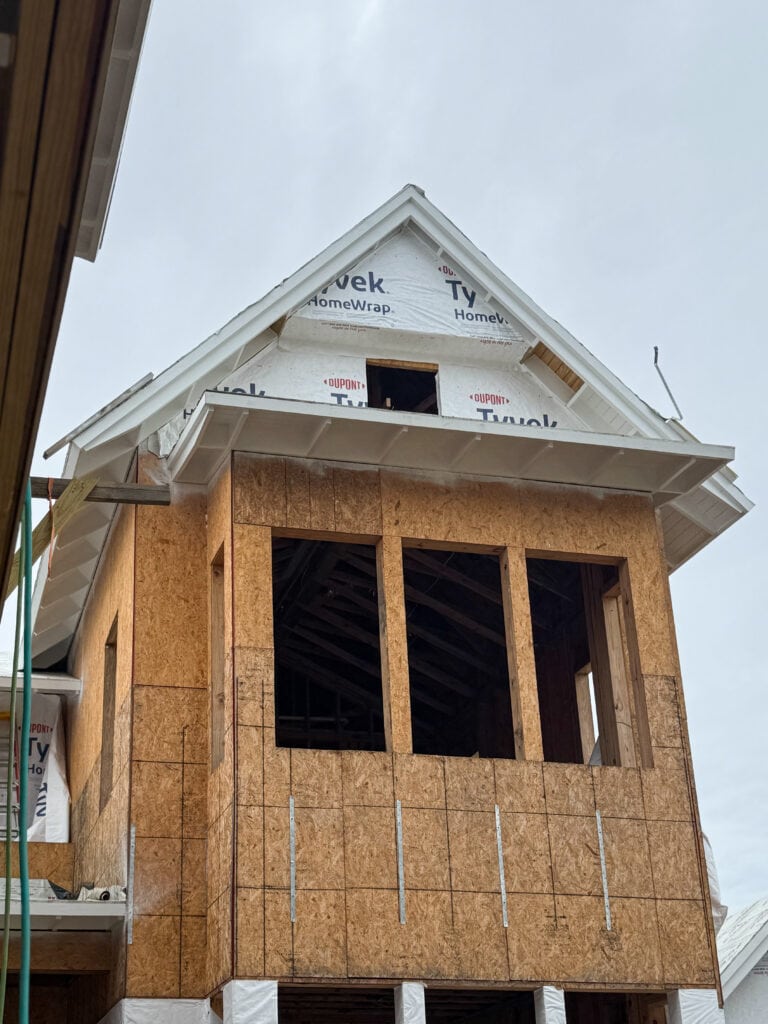 They did more TyVek wrap, and they’re starting to cut out our little square windows in several of the roof peaks.