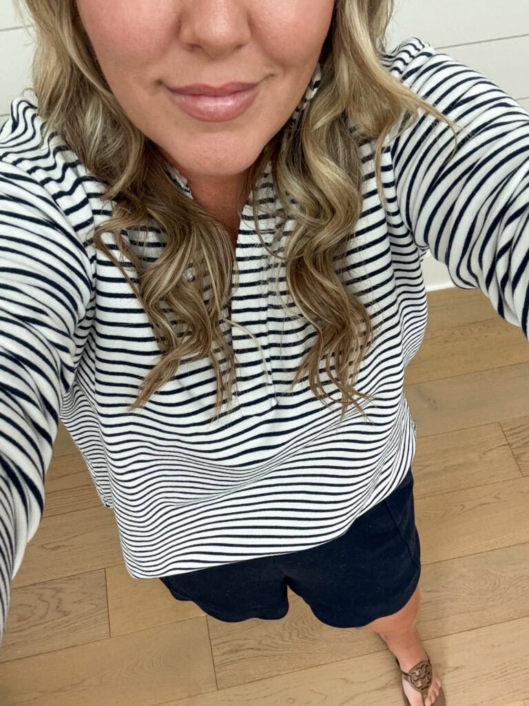 OUTFIT SOURCES: Striped Top | Shorts | Sandals (Almond Flour) | Lip Gloss (All Things Magical) | Lip Liner (Pillow Talk Original)