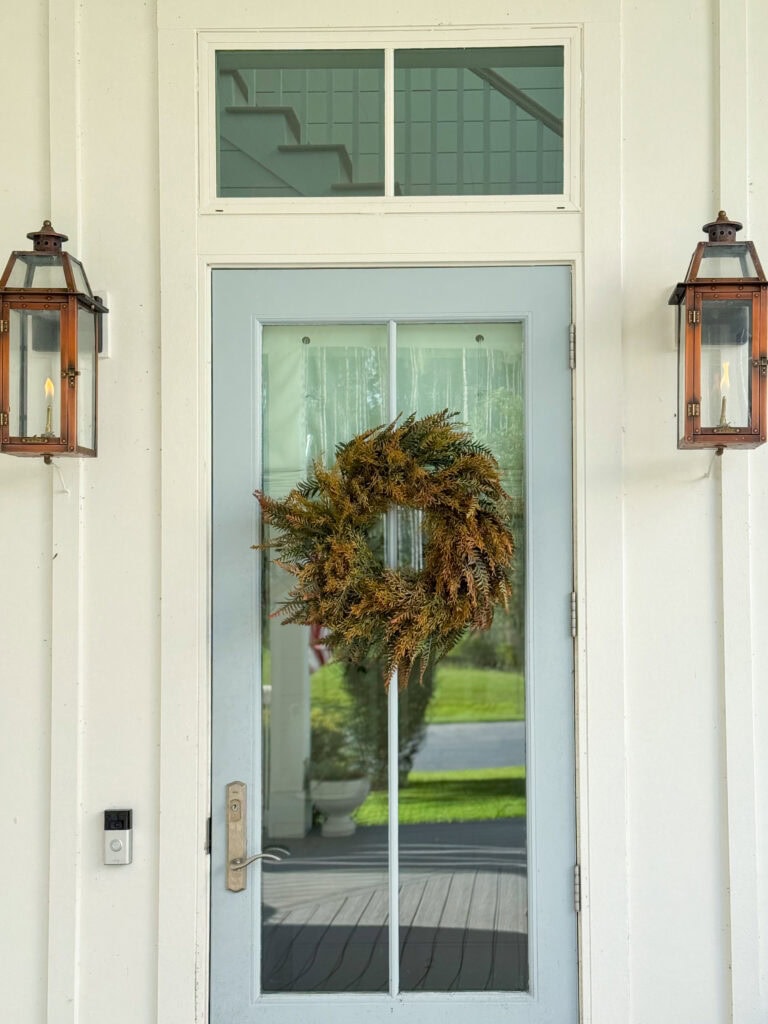 With the summer planters out of the way, I also ordered a new fall wreath. It’s not much to look at when it arrives, but it fluffs out really nicely!