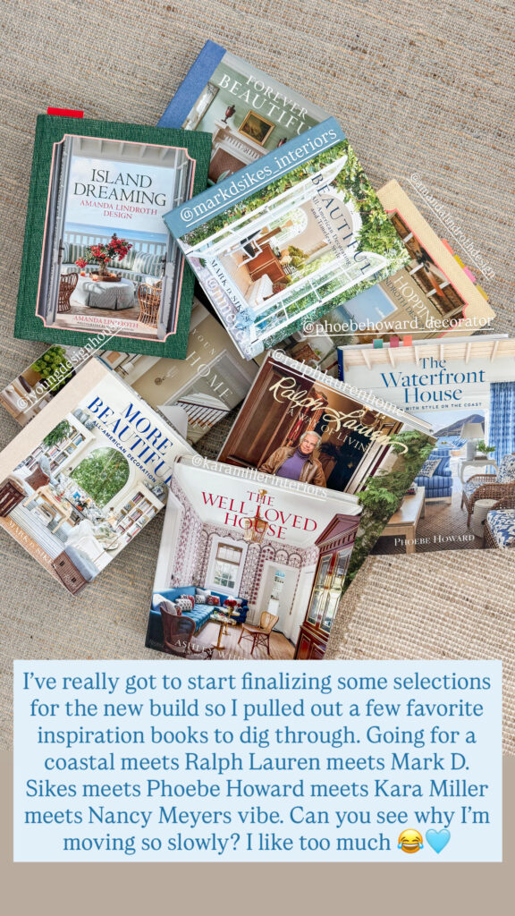 We’re starting to get down to the wire on a lot of our selections for the new build. I’m working on a big post with all the sources for everything we’ve chosen so far. But, I’ve still been struggling a bit with lighting and just the overall interior aesthetic. We had a final tile/flooring meeting on Friday, so in preparation, I pulled out all of my favorite design books to try and get a little more clarity on the overall direction. I shared this image on Instagram and it sums it up perfectly!
