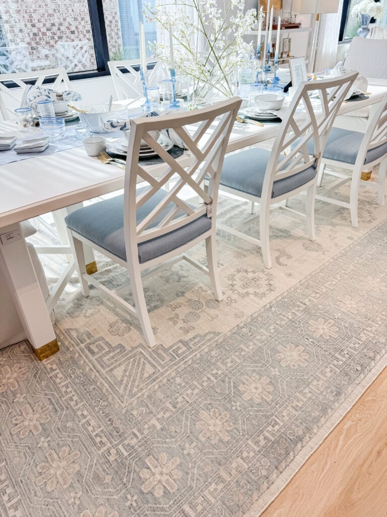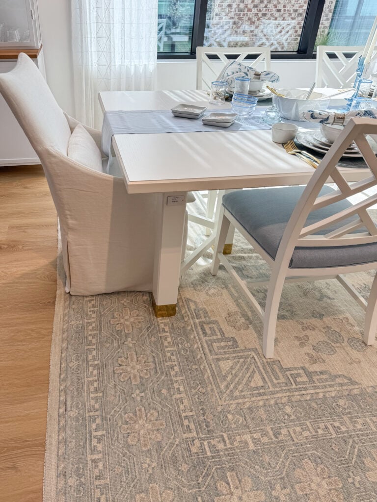 I also loved this dining setup. I’d probably swap the table for a wood one to add some warmth. But I also don’t have $30k to drop on dining room furniture, so there’s also that 😉 I did find the dining chair here (it’s super customizable) and the dining table here if any of you non-locals are interested in the source. I wasn’t successful locating the upholstered armchairs.