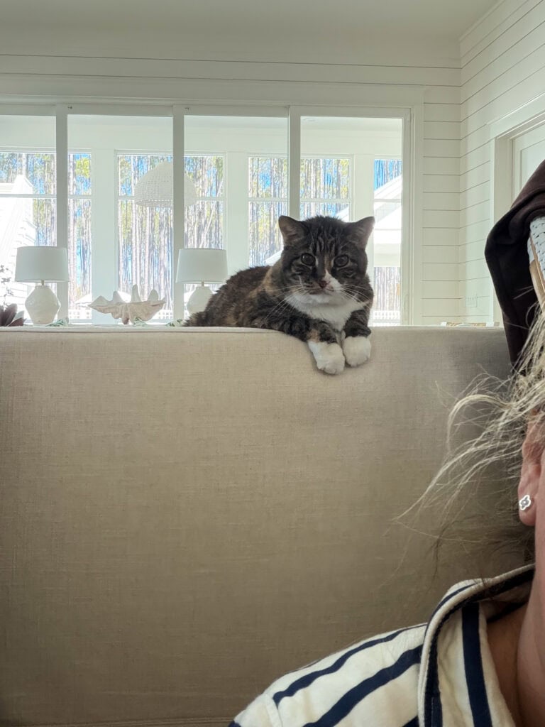 The reality is, we’ve spent most of our weekends and free time purging, packing, and donating to prep for our house to get listed in early March. We’re hoping to get all photos done before we leave town later this month, so we’ve had a lot to get ready! I was going through my dishes in the back of the island yesterday and I had the best little supervisor watching over me 😉