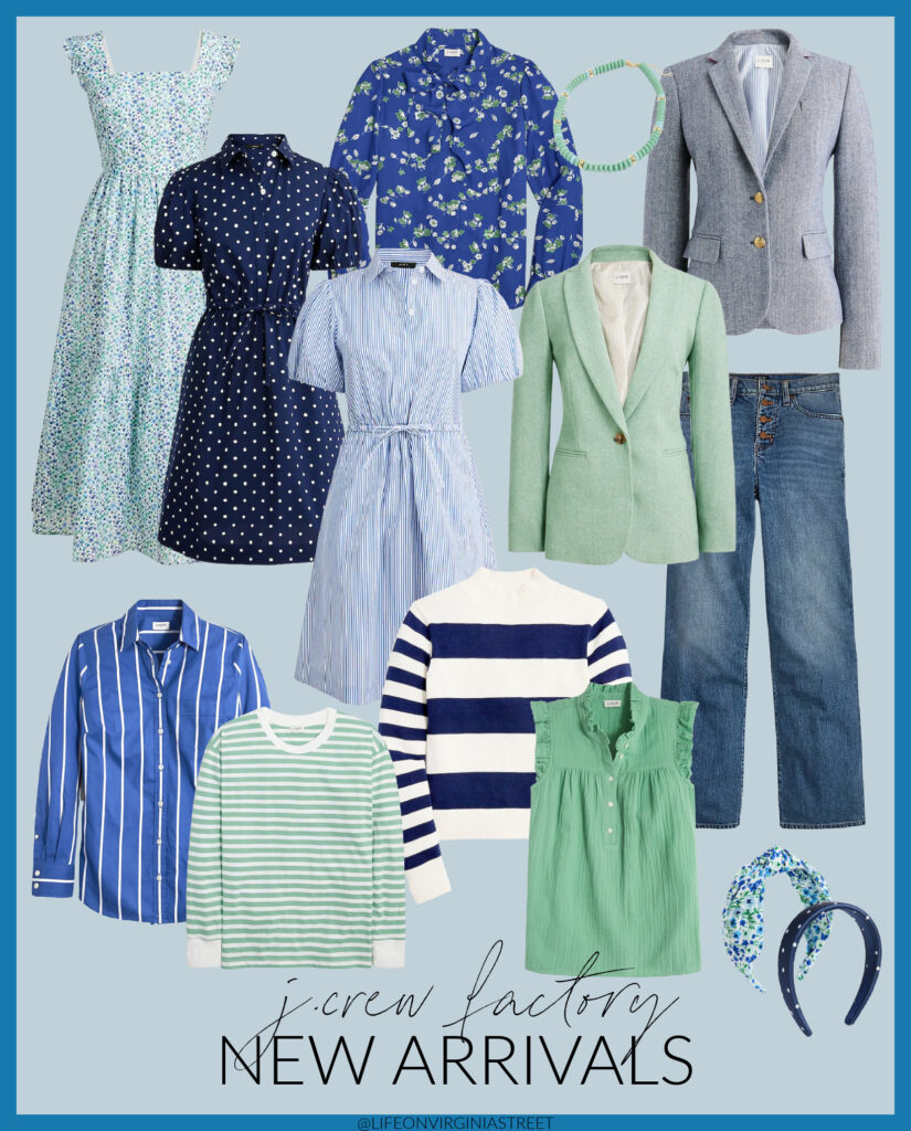 SOURCES: Floral Midi Dress | Polka Dot Dress | Striped Dress | Tie-Neck Floral Blouse | Candy Bead Necklace | Herringbone Schoolboy Blazer | Herringbone Blazer | Striped Dress Shirt | Striped Long Sleeve Tee | Striped Mockneck Sweater | Gauze Smocked Ruffle Top | Wide Leg Button Front Jeans | Floral Headband | Polka Dot Headband