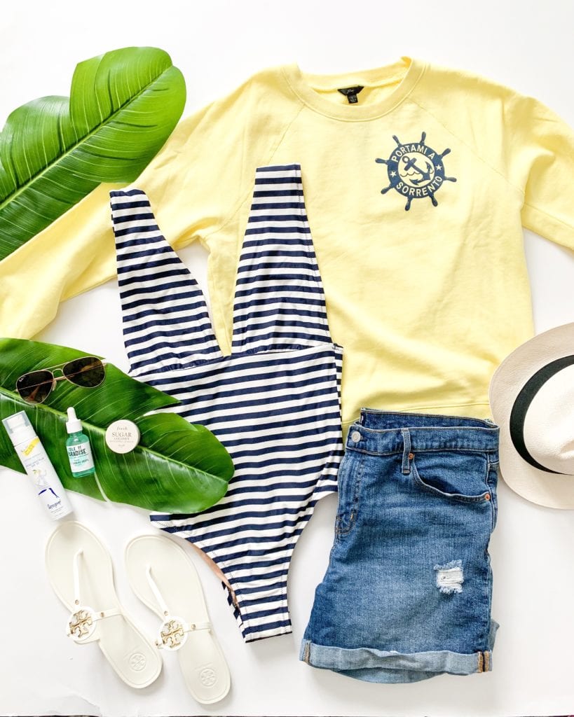 One of our catamaran trips (which also includes snorkeling) has a relatively early start time of 9:00 am. Since the temps won’t be super high yet and we’ll be out on open water, I packed this sweatshirt. It has a nice slim fit and is perfect for adding warmth but still looking beachy! And this bathing suit was just launched in a striped version. I also bought the black and army green solid versions because the reviews are true. It is one of the most universally flattering bathing suits ever. And so comfy! This one also works well if you have a long torso.