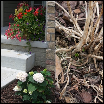 Last year while it was thriving and this years hydrangea (yes, you have to look closely or you may miss it)!